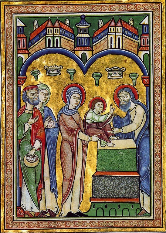 Die Darstellung Jesu im Tempel aus einem engl. Psalter des 12. Jh.<br />